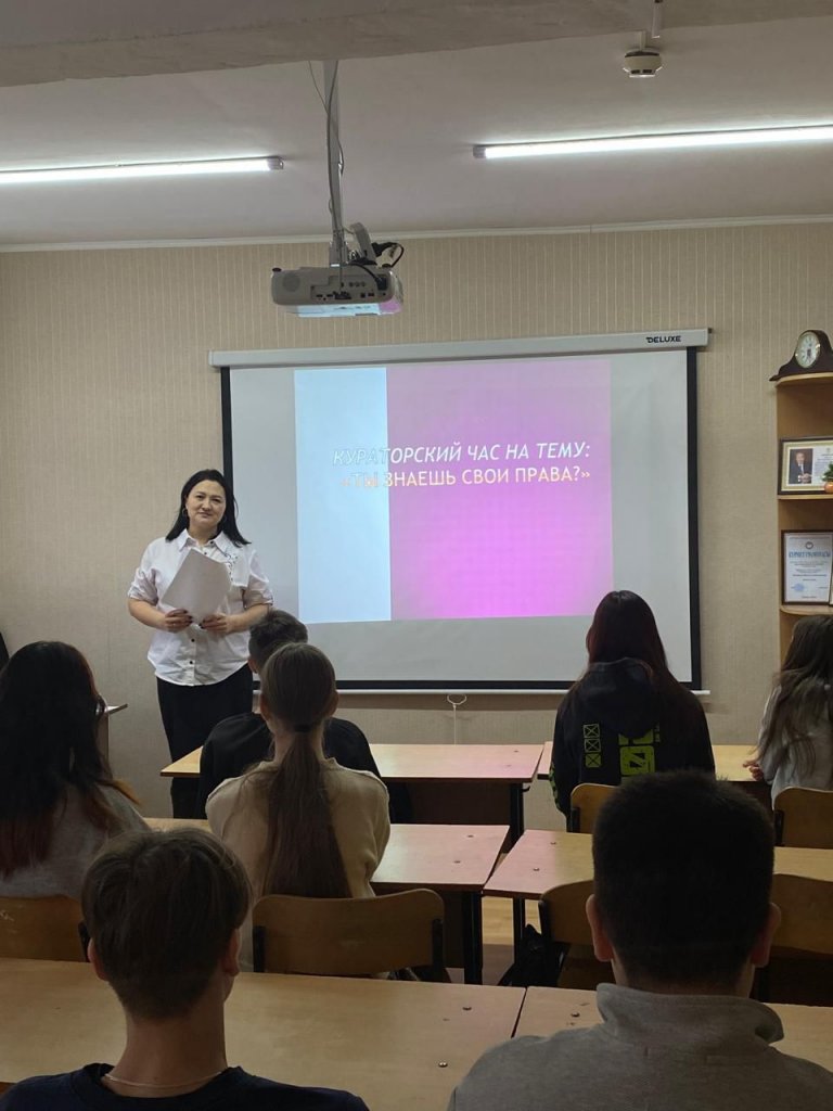 Щучинск қаласындағы Жоғары техникалық колледжде «Ұшқыр ой алаңы» жобасы аясында құқық тақырыбында викторина түрінде кураторлық сағат өтті