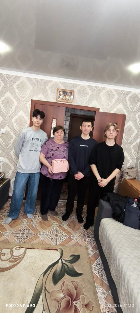 Щучинск қаласындағы Жоғары техникалық колледжінің студенттері зейнеткерлер мен педагогикалық еңбек ардагерлеріне барып, оларға құрмет көрсетіп, қамқорлық пен жылы көңіл сыйлауды жалғастыруда.
