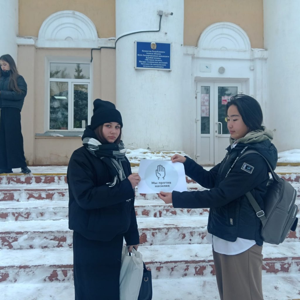 6 қараша күні Щучинск қаласының Жоғары техникалық колледжі студенттері «Біз – зорлық-зомбылыққа қарсымыз» атты ақпараттық буклеттер тарату акциясын өткізді.