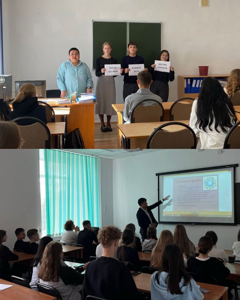 Щучинск қаласының Жоғары техникалық колледжінде «Достық заңы – барлық заңдардың ішіндегі ең маңыздысы» тақырыбында кураторлық сағат өтті.