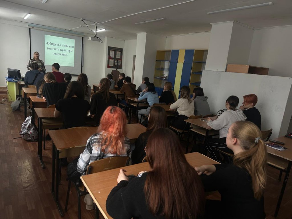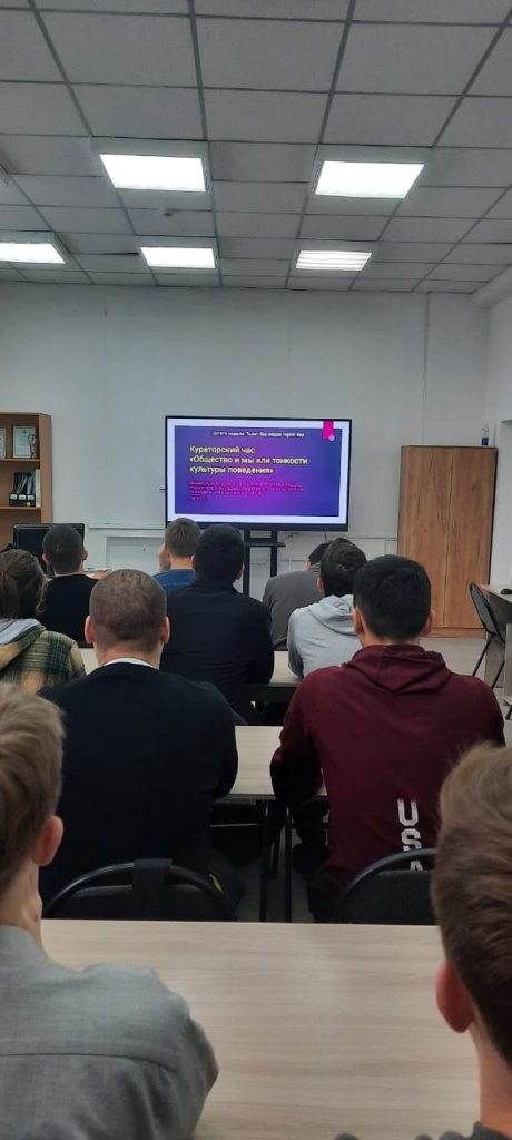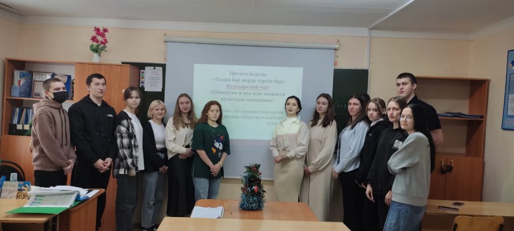 13 қаңтар күні Щучинск қаласының Жоғары техникалық колледжінде «Қоғам және біз: мінез-құлық мәдениетінің нәзік қырлары» тақырыбында кураторлық сағат өтті. Іс-шара барысында студенттер этикет ережелері, үлкендерге құрмет көрсету, қарым-қатынастағы сыйластық ұстанымдары мен іскерлік байланыстардағы әдеп нормалары туралы маңызды мәселелерді талқылады. Кураторлық сағат жастарға мінез-құлық мәдениетінің терең мәнін түсінуге және оны күнделікті өмірде қолданудың маңыздылығын сезінуге мүмкіндік берді. Білім алушылармен қарапайым сыпайылық ережелерін сақтау мен айналадағы адамдарға құрмет көрсету табысты қарым-қатынас пен қоғамда үйлесімді өмір сүрудің кепілі екендігі жөнінде пікір алмастырылды.