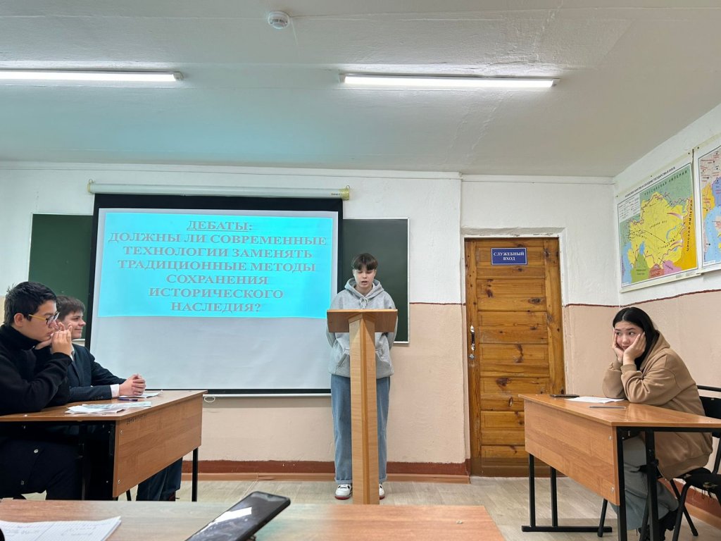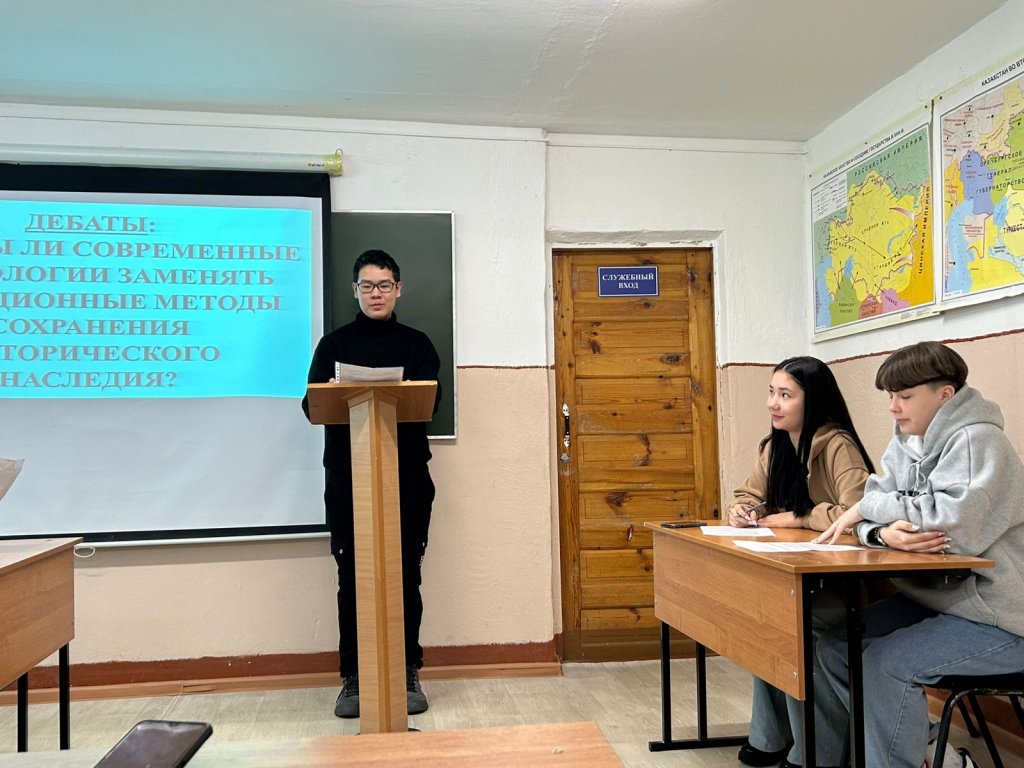 Ағымдағы жылдың 7 ақпанында Щучинск қаласының Жоғары техникалық колледжінде «Заманауи технологиялар тарихи мұраны сақтаудың дәстүрлі әдістерін алмастыра ала ма?» тақырыбында пікірсайыс өтті.