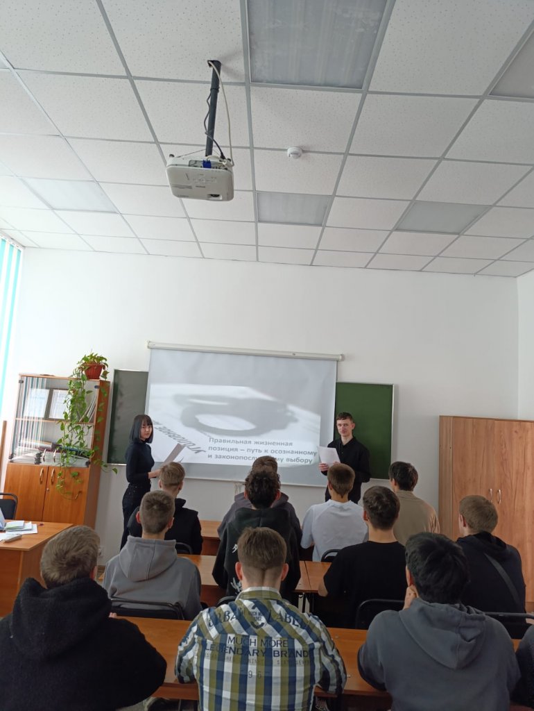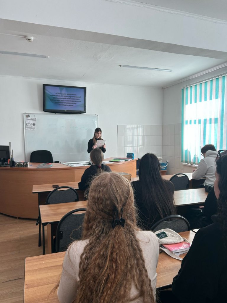 24 ақпан күні Щучинск қаласының Жоғары техникалық колледжінде «Адам неге қылмыс жасайды? Заңға қайшы әрекеттерге балама ретінде дұрыс өмірлік ұстаным» тақырыбында кураторлық сағат өтті. Кураторлық сағаттың басты мақсаты – қылмыстық мінез-құлықтың себептері туралы студенттердің түсінігін кеңейтіп қана қоймай, оларда дұрыс өмірлік ұстанымды қалыптастыру болды. Әр адамның таңдауы оның болашағына және қоғамға айтарлықтай әсер ететінін көрсету маңызды болды. Қылмыс пен оның себептері жөніндегі талқылау студенттерге теріс салдарға әкелетін факторларды тереңірек түсінуге, сондай-ақ саналы әрі жауапты шешім қабылдаудың маңызын ұғынуға мүмкіндік берді.