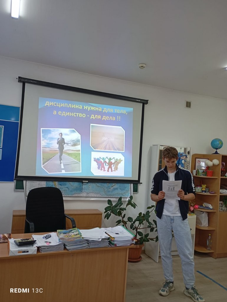 Щучинск қаласының Жоғары техникалық колледжінде 2025 жылғы 19 мамыр күні «Тәртіп – тәнге, бірлік – іске керек» атты кураторлық сағат өткізілді. Іс-шараның негізгі мақсаты – тәртіптің адам денсаулығы мен өзін-өзі тәрбиелеудегі орнын түсіндіру, сондай-ақ өмірде де, білім жолында да бірлік пен өзара сыйластықтың, ынтымақ пен түсіністіктің маңызын терең түсіну.