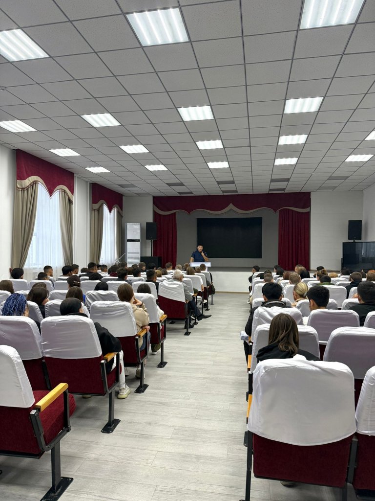 Бүгін колледжде студенттердің ювеналды полиция қызметкері Бекентаев Е.К.-мен кездесуі өтті. Кездесудің басты тақырыбы — жастар арасындағы қылмыс пен құқық бұзушылықтың алдын алу.