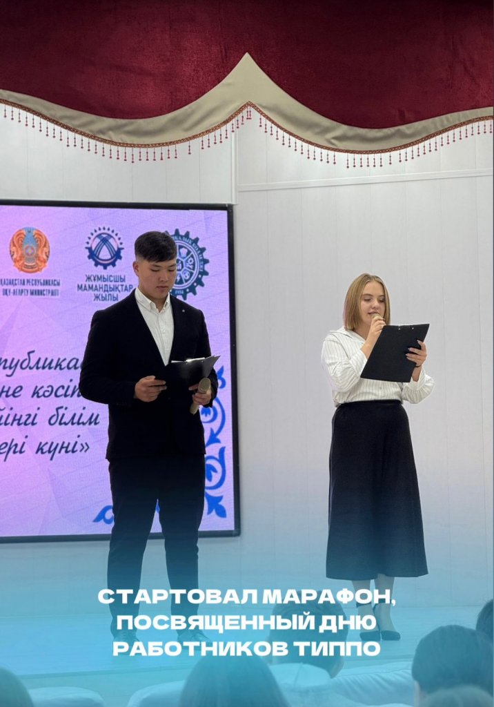Бүгін колледжімізде «Кәсіптік білім – қолдағы шеберлік, жүректегі от, болашаққа ашылған қақпа» атты техникалық және кәсіптік, орта білімнен кейінгі білім беру қызметкерлері күніне орай он күндіктің салтанатты ашылуы өтті.