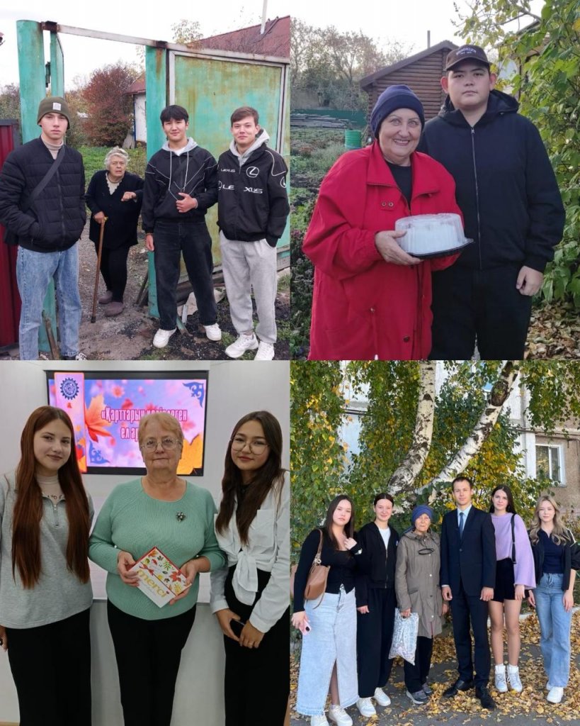 Мерекелік бағдарлама аясында колледж студенттері еңбек ардагерлерін құттықтау акциясын өткізді. Жастар ардагерлерге естелік сыйлықтар, ашық хаттар мен гүлдер табыстап, көңіл-күй сыйлап, сыйластық пен құрметтің жарқын үлгісін көрсетті.