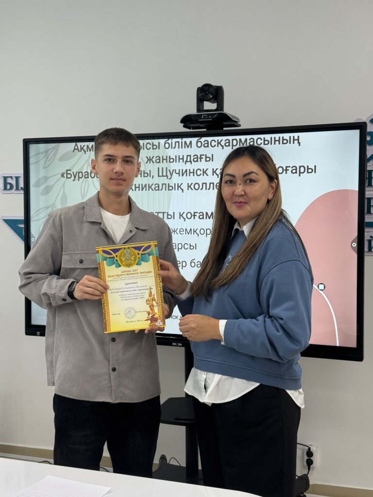 ПО-42 және ПО-43 топтары арасында Сыбайлас жемқорлыққа қарсы «Sanaly urpaq» клубының төрайымы Э.В.Турищева ұйымдастырған «Салауатты қоғам – 2025» атты сыбайлас жемқорлыққа қарсы бейнероликтер байқауы өтті. Байқауға 10 жұмыс келіп түсті.
