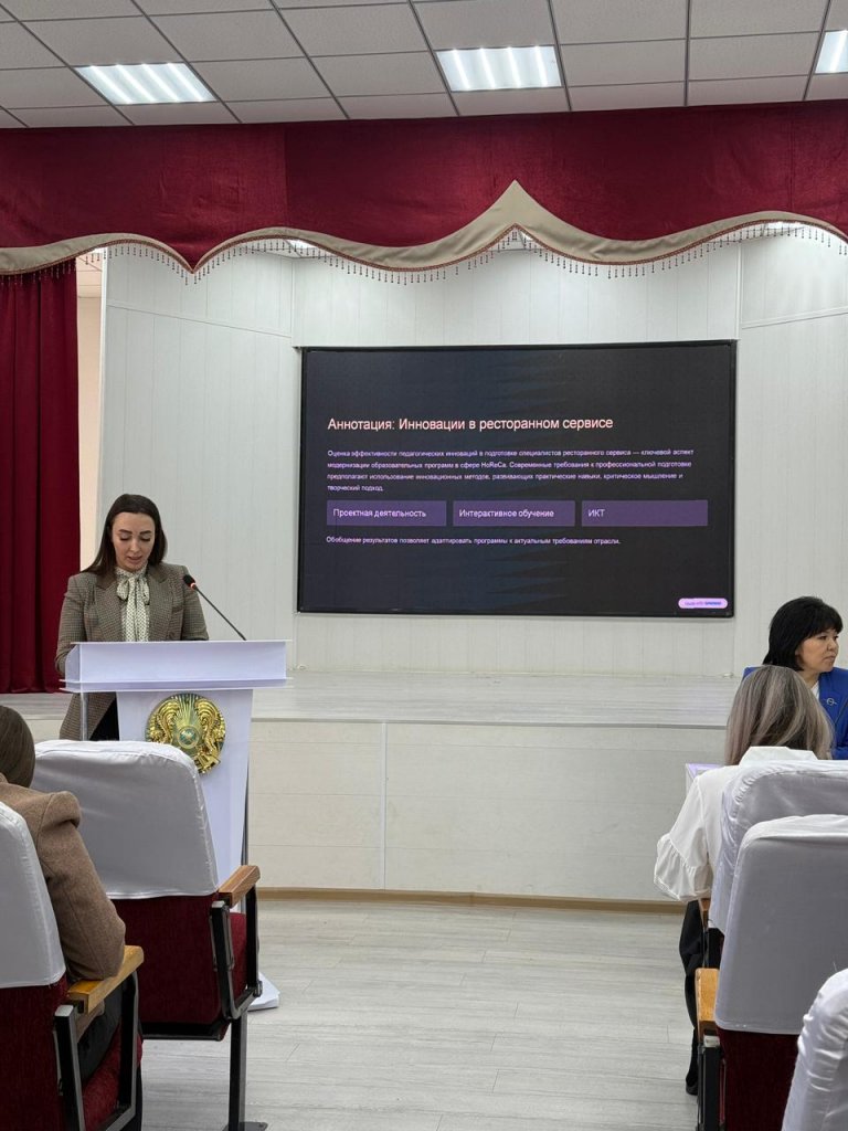 Өндірістік оқыту шеберлері Р.В.Ахметжанов, В.П.Федотов, бөлім меңгерушісі Д.А.Ширшов 2025 жылдың 6-17 қазан аралығында Кентау политехникалық колледжінің жанында өткен біліктілікті арттыру курстары бойынша есеп берді. Сондай-ақ, Әдістемелік кеңесте биылғы оқу жылында озық педагогикалық тәжірибеге ұсынылатын авторлық жұмыстар да талқыланды: арнайы пәндердің оқытушысы К.Н.Посметухова «ТжКББ студенттерінің кәсіптік құзыреттіліктерін қалыптастыру мақсатында UX-зерттеулердің, Design Thinking және UX/UI-дизайны жобалық оқытуға ЖИ цифрлық құралдарының интерграциясы», өндірістік оқыту шебері Хомидова Г.А. «Мейрамханаға қызмет көрсететін мамандарды даярлауда педагогикалық инновацияларды енгізудің тиімділігін бағалау», ағылшын тілі пәнінің оқытушысы Б.О.Бекбулатова «Тамақтандыруды ұйымдастыру» мамандығы бойынша студенттерге ағылшын тілін үйретудің тиімді тәжірибелерін қолдану». Кеңес соңында колледж директоры Назым Кабдушевна оқу-тәрбие мәселелері бойынша бірнеше өзекті сұрақтарға тоқталды, тиісті нұсқаулар берілді.