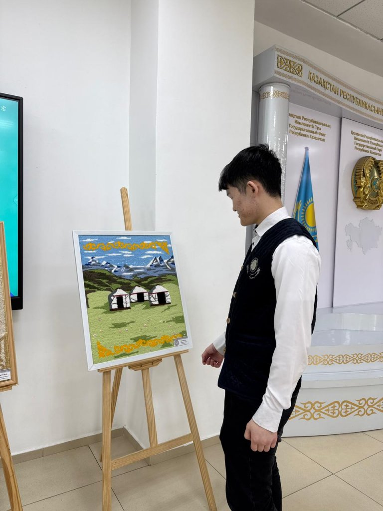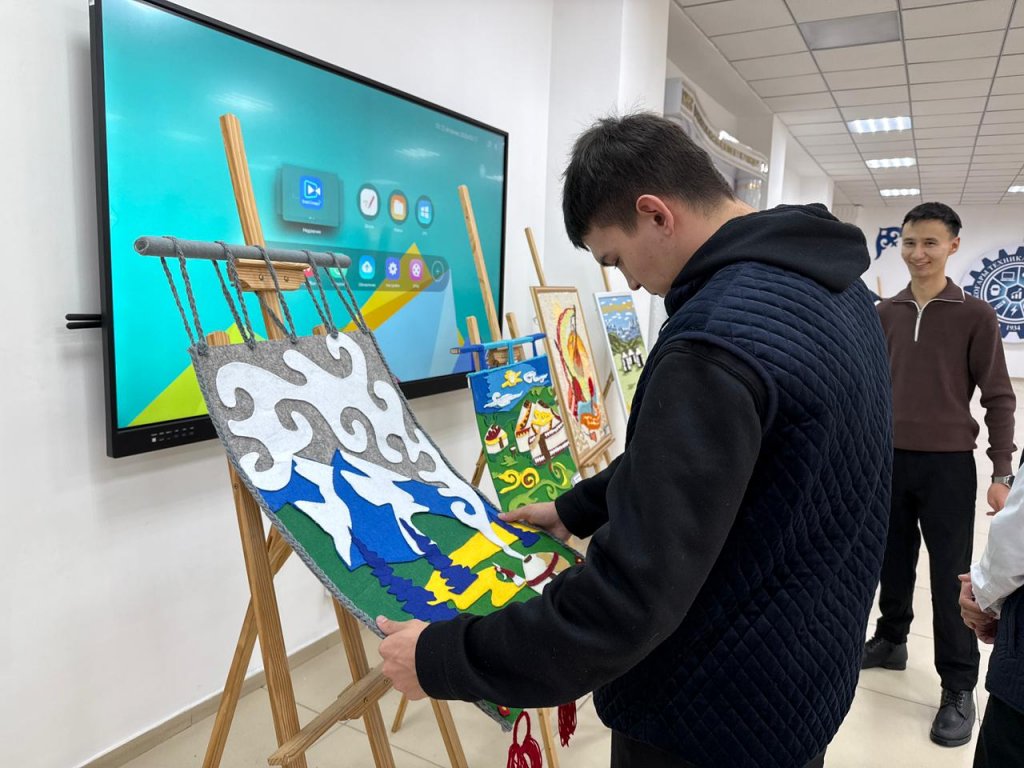 «Шебер қолдар», «Бес аспап», «Алтын оймақ» аясында студенттер өз жұмыстарын ұсынды: суреттер мен кілем тоқу элементтері.