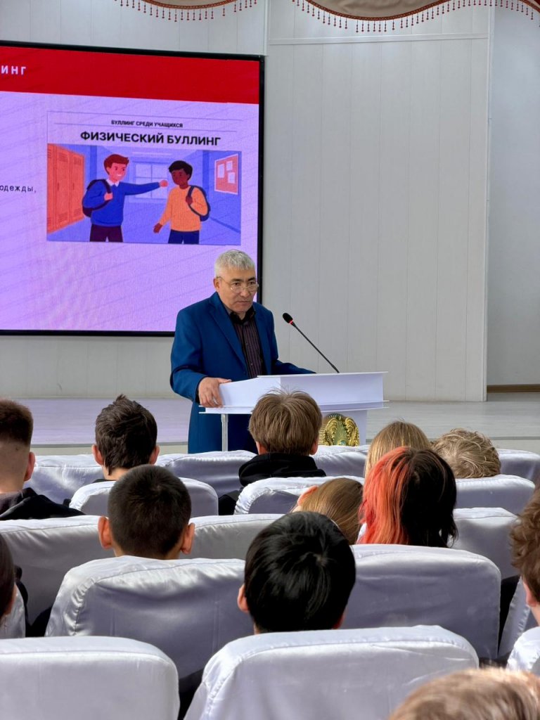 Әлеуметтік педагог Қасымов Б. С. білім алушыларды азаматтардың негізгі құқықтары мен міндеттерімен таныстырып, заңнаманы сақтаудың маңыздылығын атап өтті 📖. Кездесу барысында жастар күнделікті өмірде кездесуі мүмкін өзекті құқықтық мәселелер қарастырылды 💬.